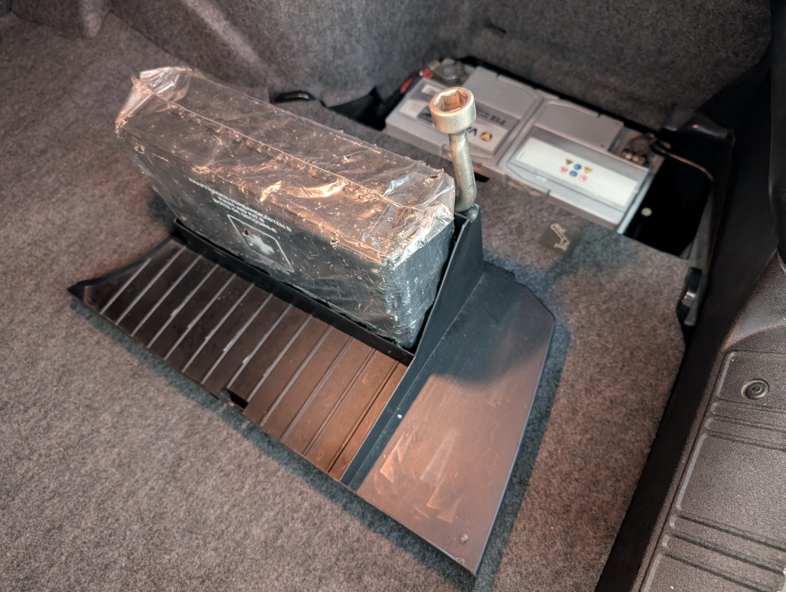 バッテリーはトランク右にありますのでカバーを外します。